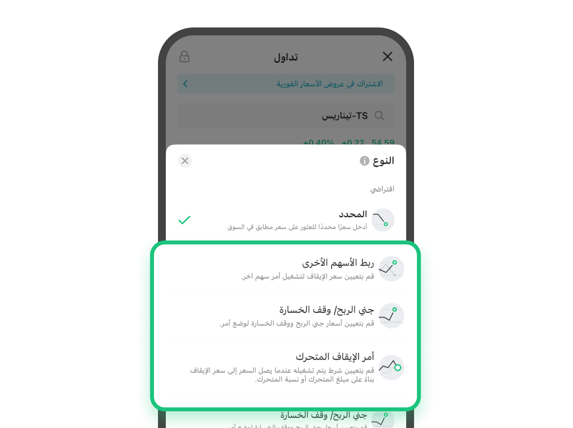 استخدم الأوامر المشروطة لتشغيل خطتك تلقائيًا. أنت تحدد القواعد والمحفزات، ومنصة سهم تنفذ.