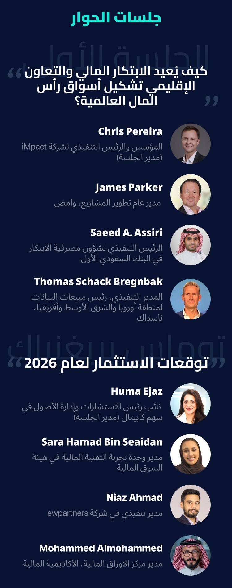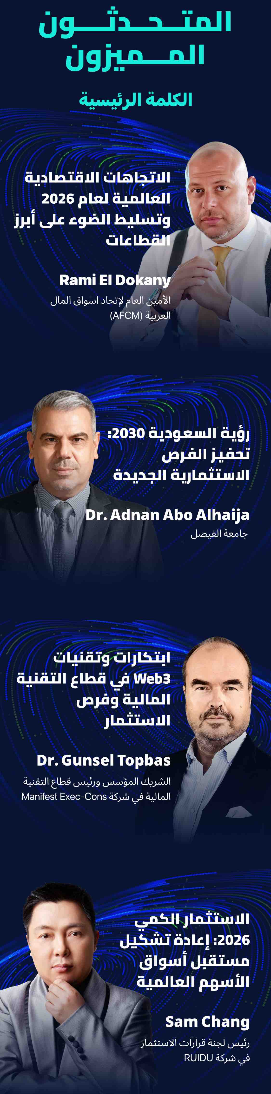 ويتضمّن البرنامج كلمات رئيسية يلقيها عدد من القادة في أسواق المال والأوساط الأكاديمية والابتكار المالي والاستثمار الكمي. كما سيشمل جلسات نقاشية تتناول التعاون الإقليمي، وتطوّر أسواق رأس المال العالمية، وآفاق الاستثمار لعام 2026.