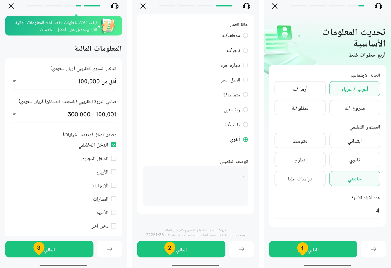 الخطوة 3: املأ معلوماتك الشخصية والوظيفية والمالية بدقة، ثم انقر على "التالي".