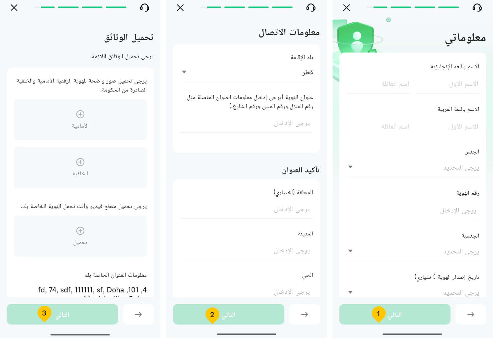 الخطوة 6: قم بإدخال معلوماتك الخاصة ومعلومات الاتصال، ثم قم بتحميل الوثائق المطلوبة، ثم انقر على "التالي".