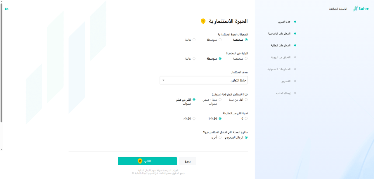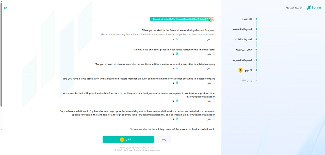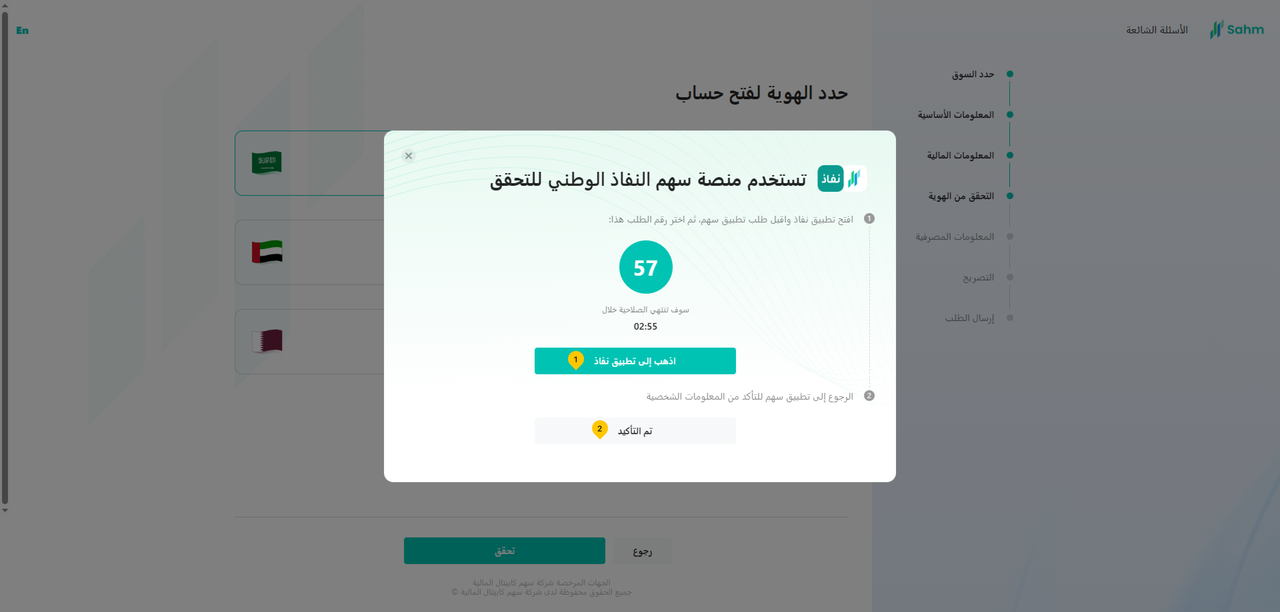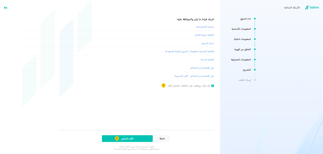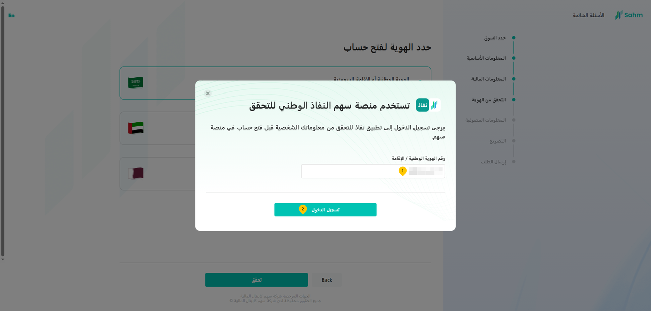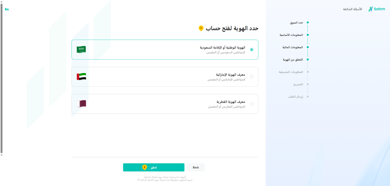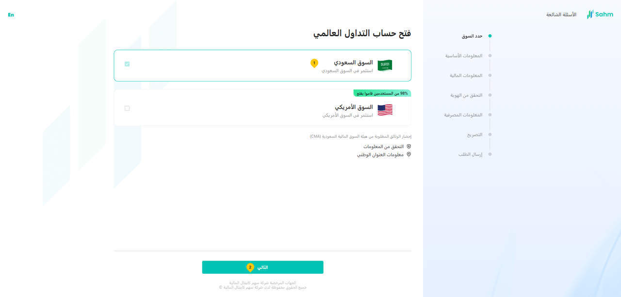 خطوات فتح حساب عبر موقع التداول الخاص بمنصة سهم هي كما يلي: