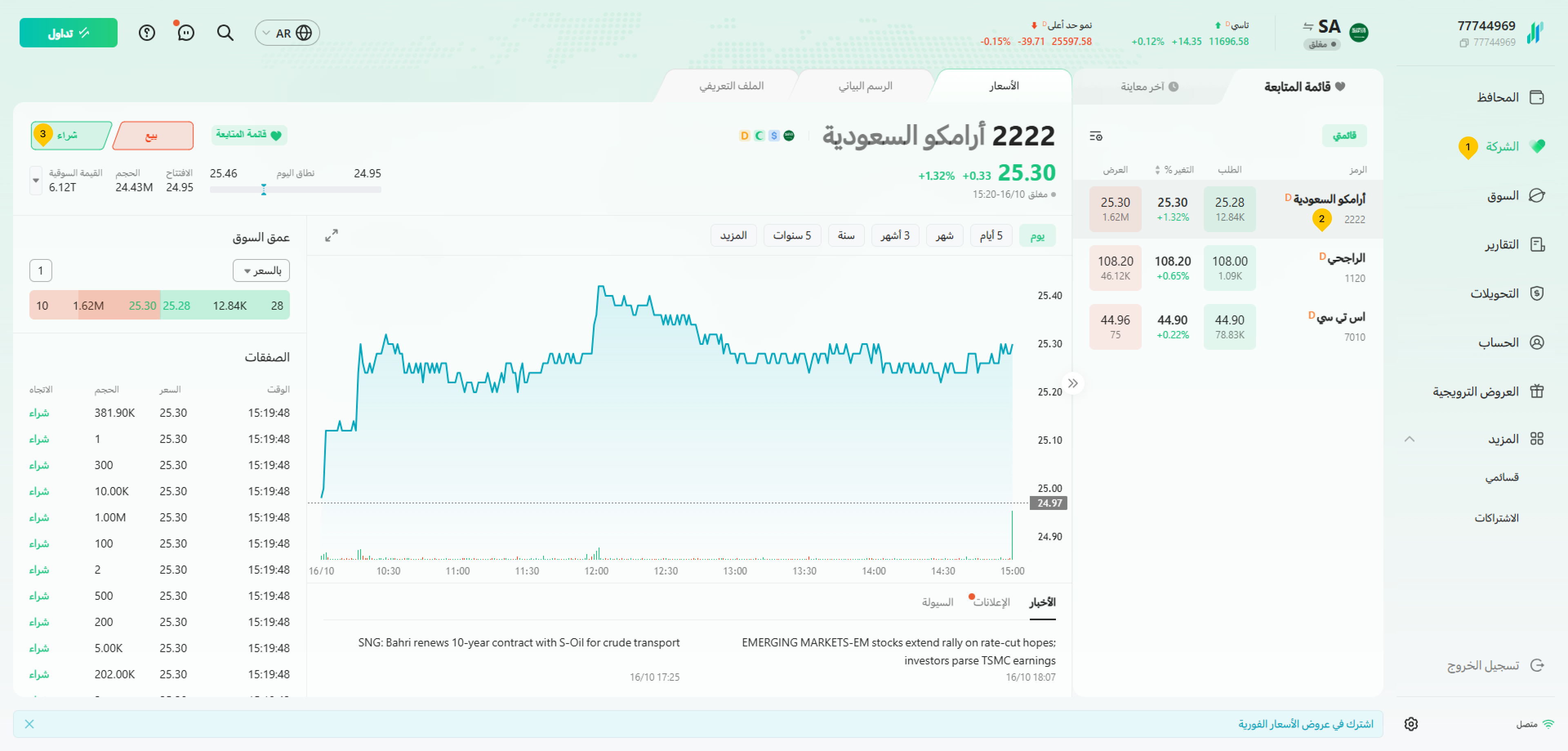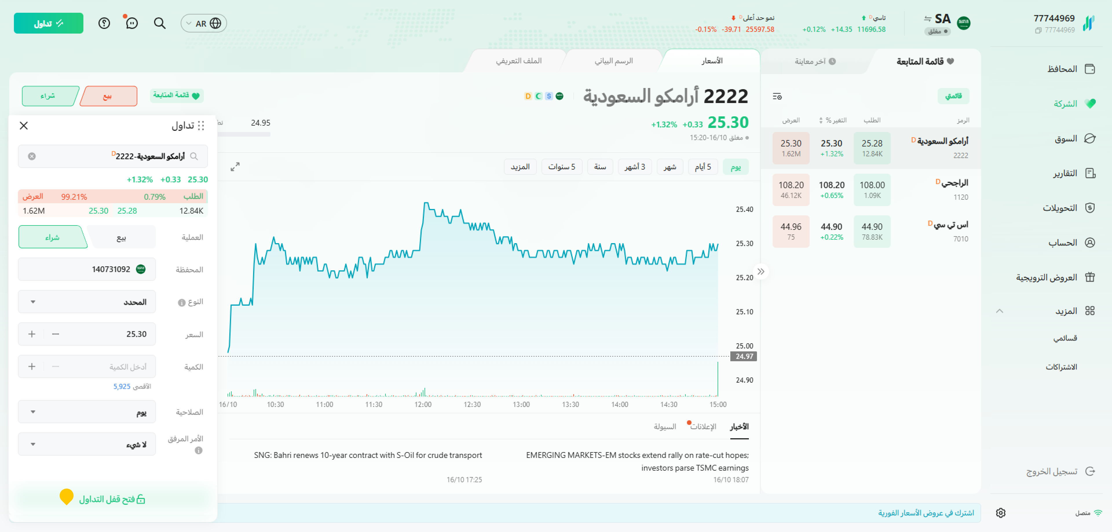 يرجى استخدام متصفح الكمبيوتر الشخصي للوصول إلى التسجيل - تداول السعودية
