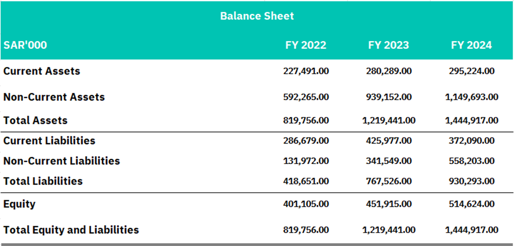 Cherry Car Rentals exhibited substantial balance sheet expansion and significant capital intensity growth over the FY2022-FY2024 period, with Total Assets increasing 76.3% from SAR 819.8 million to SAR 1,444.9 million. Non-Current Assets surged dramatically by 94.1% to reach SAR 1,149.7 million, reflecting substantial capital investments in the vehicle fleet and infrastructure necessary to support the company's aggressive growth strategy. This capital-heavy asset base is typical for car rental operators and underscores the business model's inherent asset intensity. Current Assets grew more modestly at 29.7% to SAR 295.2 million, suggesting that working capital management remained relatively disciplined despite the rapid top-line expansion. The balance sheet composition reveals that Non-Current Assets now represent 79.6% of total assets in FY2024, compared to 72.3% in FY2022, confirming the company's ongoing investment in long-term productive capacity.