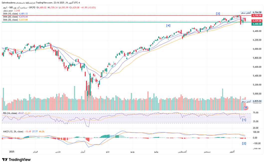 [3] From a structural perspective, the S&P 500 has faced resistance in the 6,750 zone, which represents a critical inflection point following the powerful rally from May through October. The current pullback from the intraday high, combined with the negative MACD divergence and deteriorating histogram, suggests profit-taking and potential consolidation rather than a trend reversal.