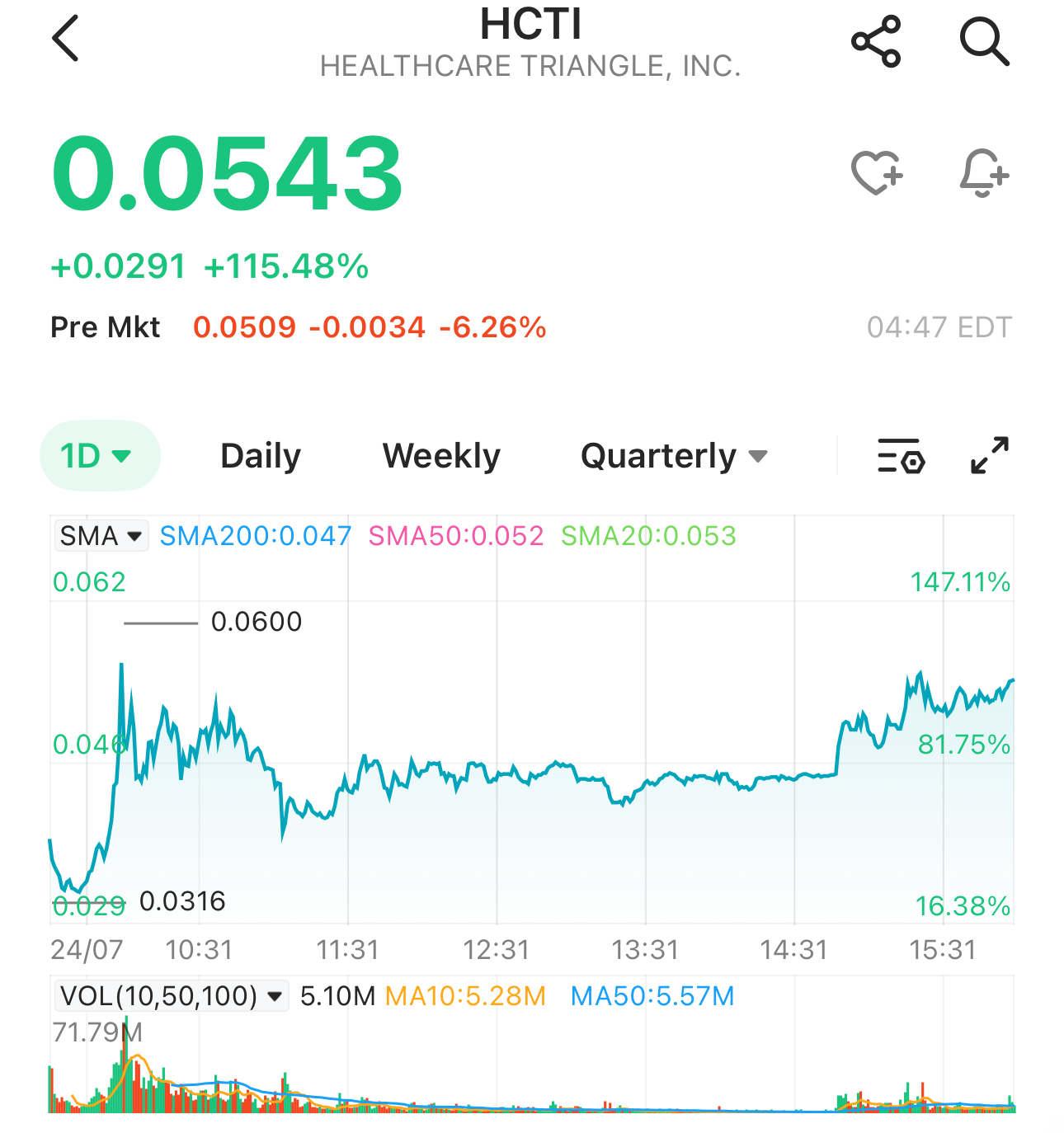 The frenzy reached a fever pitch on July 24th, when the little-known medical IT firm HEALTHCARE TRIANGLE, INC.(HCTI.US) soared 115% in a single day, accounting for roughly 15% of the entire U.S. stock market's trading volume.