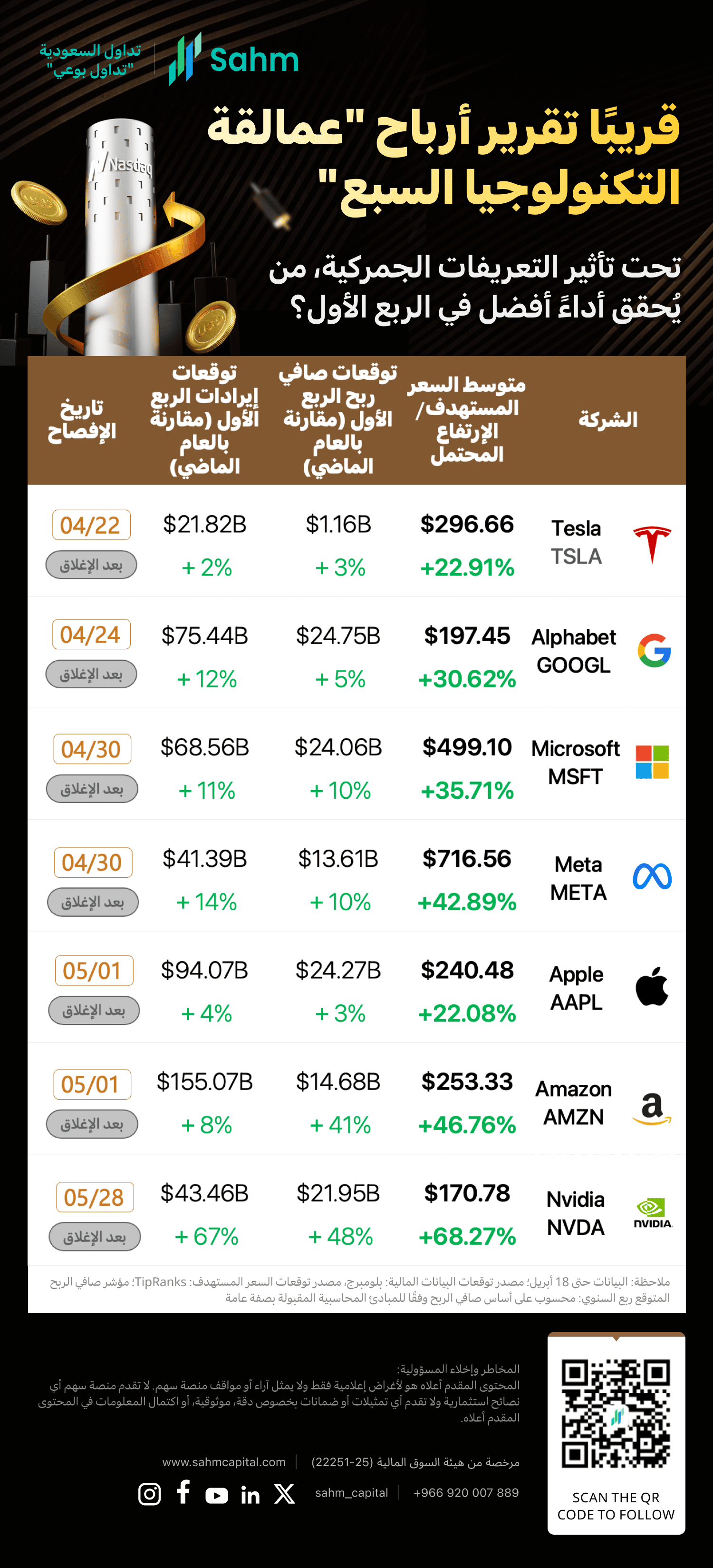 The US tech "Magnificent Seven" are set to report their quarterly earnings over the coming weeks, starting with Tesla Motors, Inc.(TSLA.US) after market close on Tuesday, April 22nd.