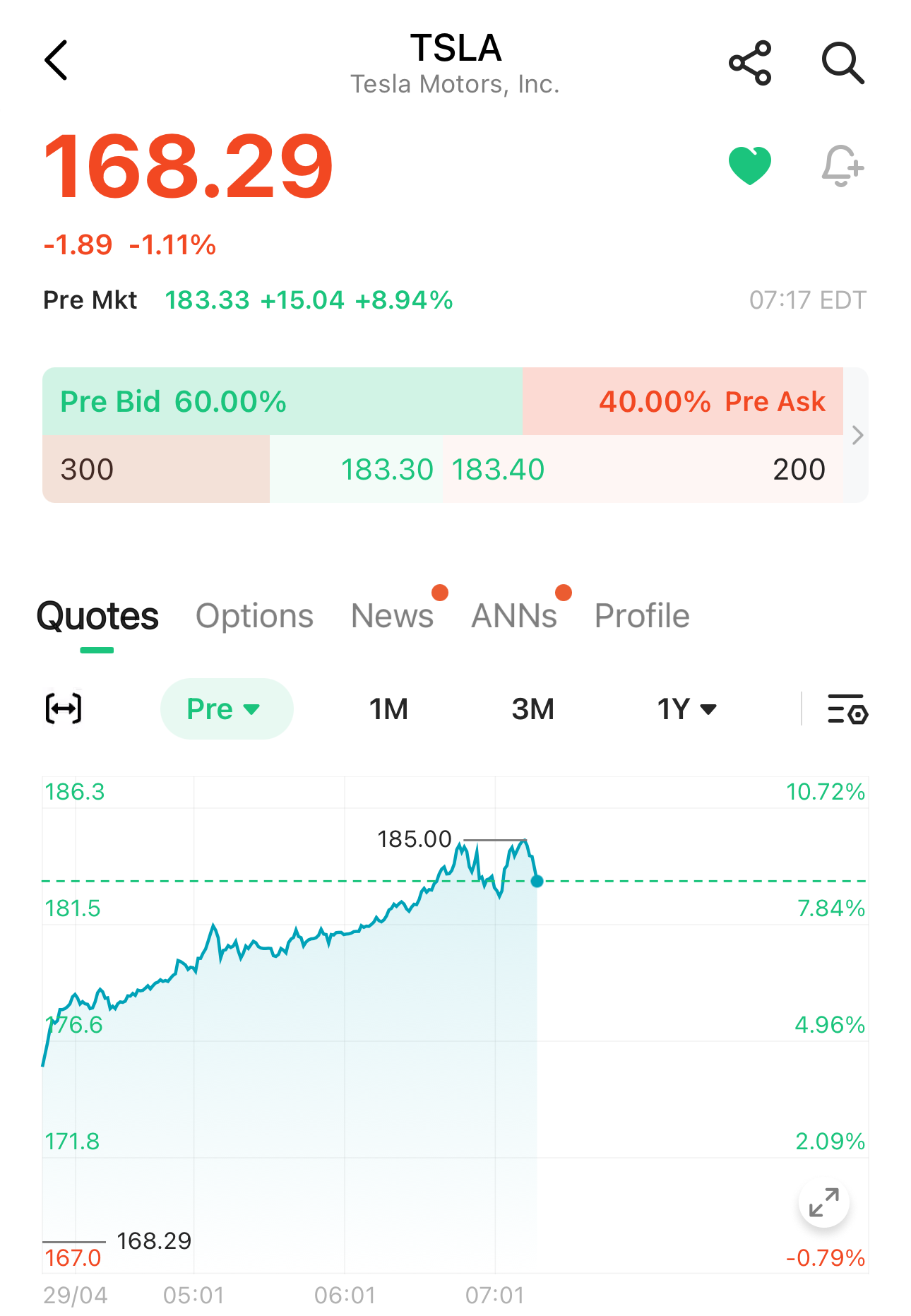 From January 1, 2022, to April 29, 2024 pre-market, Tesla's stock price has fallen 52.23% in this range, and its position as the global electric vehicle sales champion is also being threatened by competitors. An increase in profit, or at least a convincing story about profit growth, can provide good support for valuation.