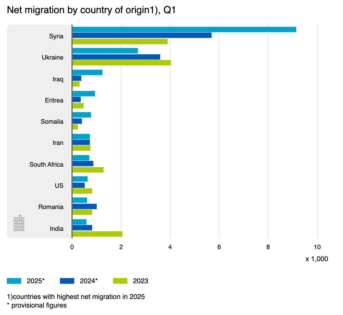 Meanwhile, the number of asylum-based, non-EU immigration rose in the first quarter of 2025 compared to the 2024 rates.