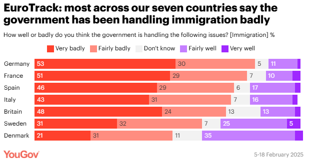 There is "unhappiness with the government handling of immigration across the board," Matthew Smith, YouGov's head of data journalism, said of the survey.