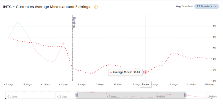 - History Hints Downwards: Looking back at the last 12 earnings reports, INTC stock has dropped more often than it has risen afterward. Signal: While history isn't guaranteed, there's a past tendency for the stock to fall after the earnings news.