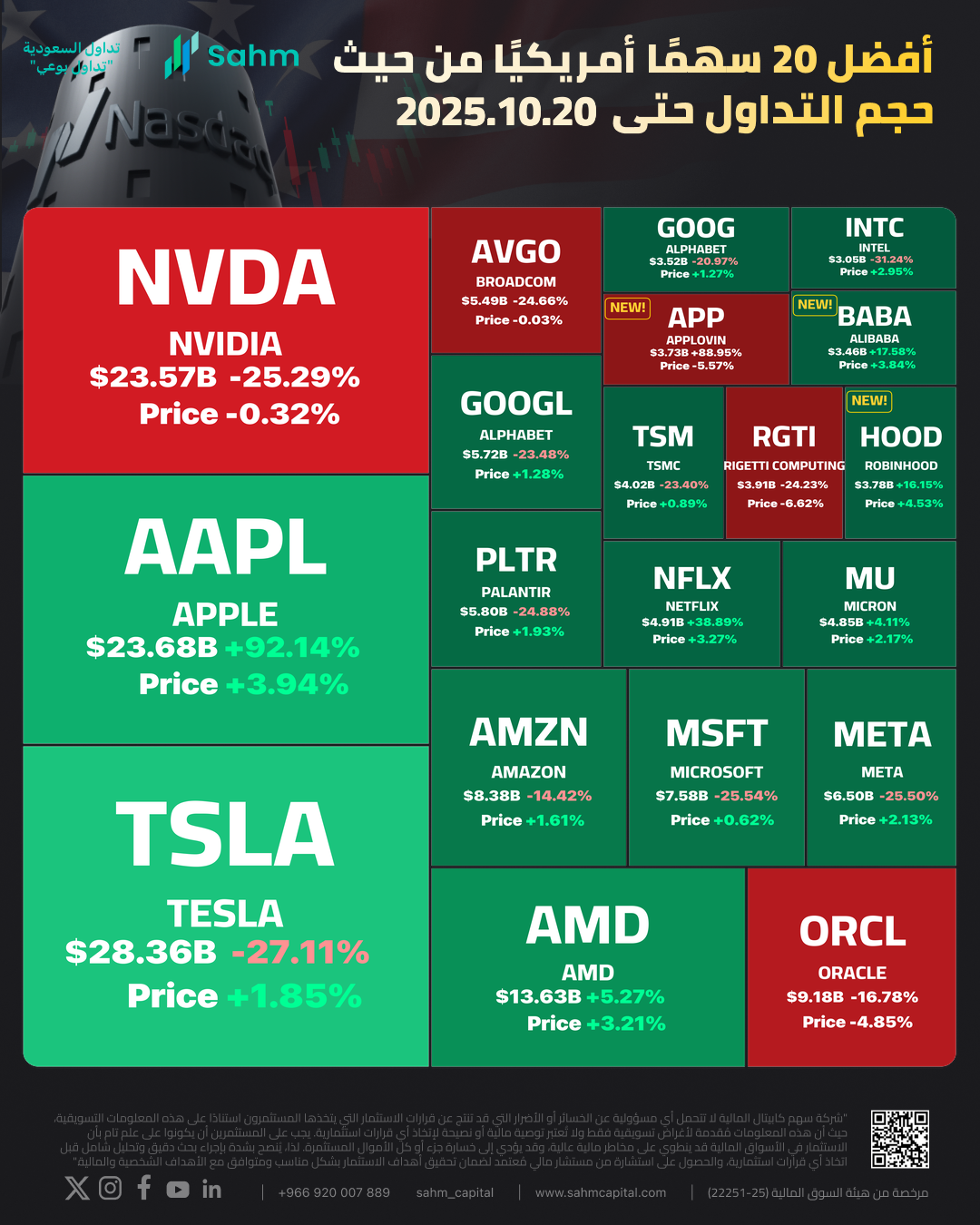 In One Chart | AAPL Record High with Strong iPhone17 Sales Start - What Happened to Top 20 US Stocks by Turnover on October 21st