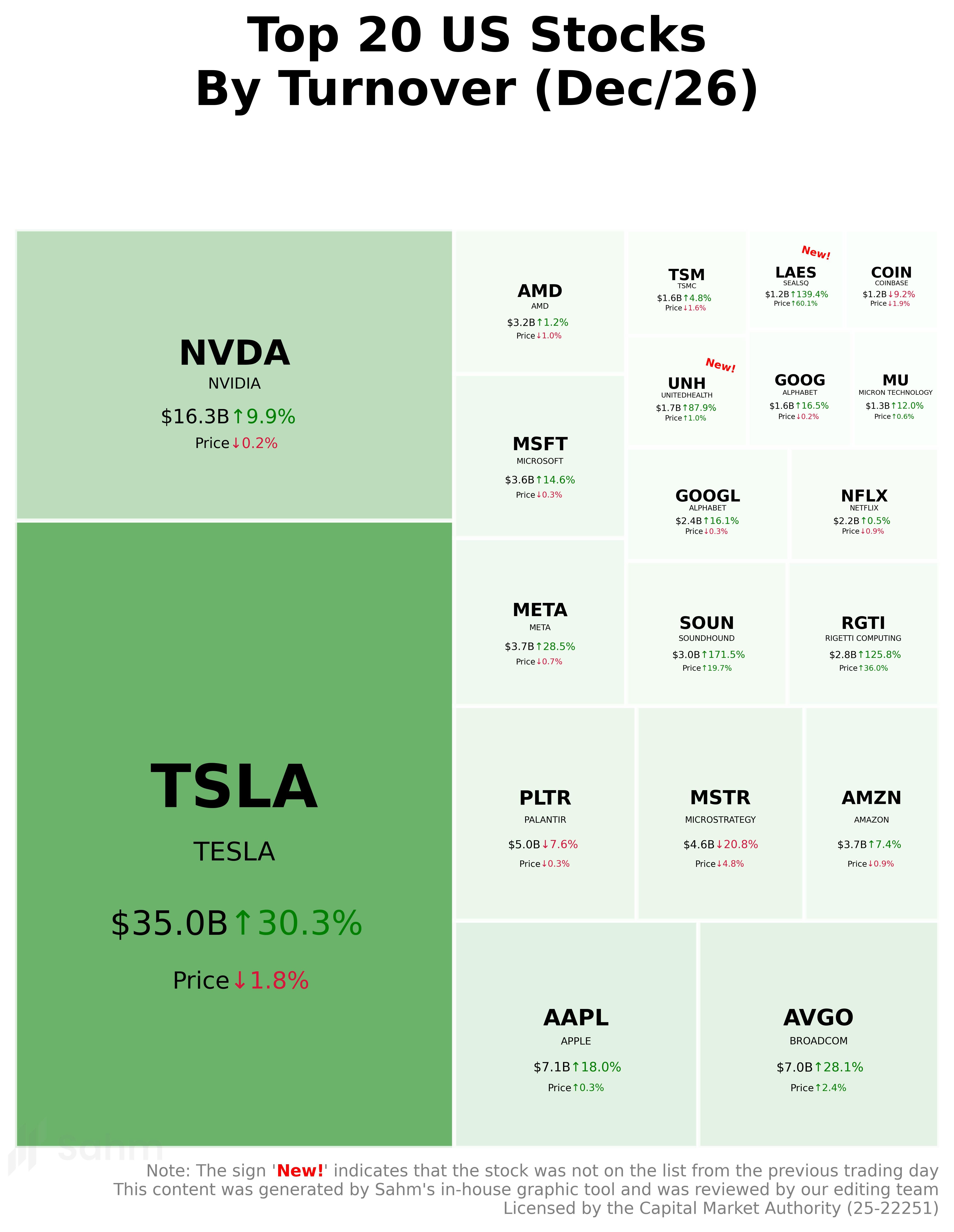 In One Chart | NVDA Year's Most Popular Stock Among Retail; LAES, UNH Joined Top 20 US Stocks by Turnover on Dec/26