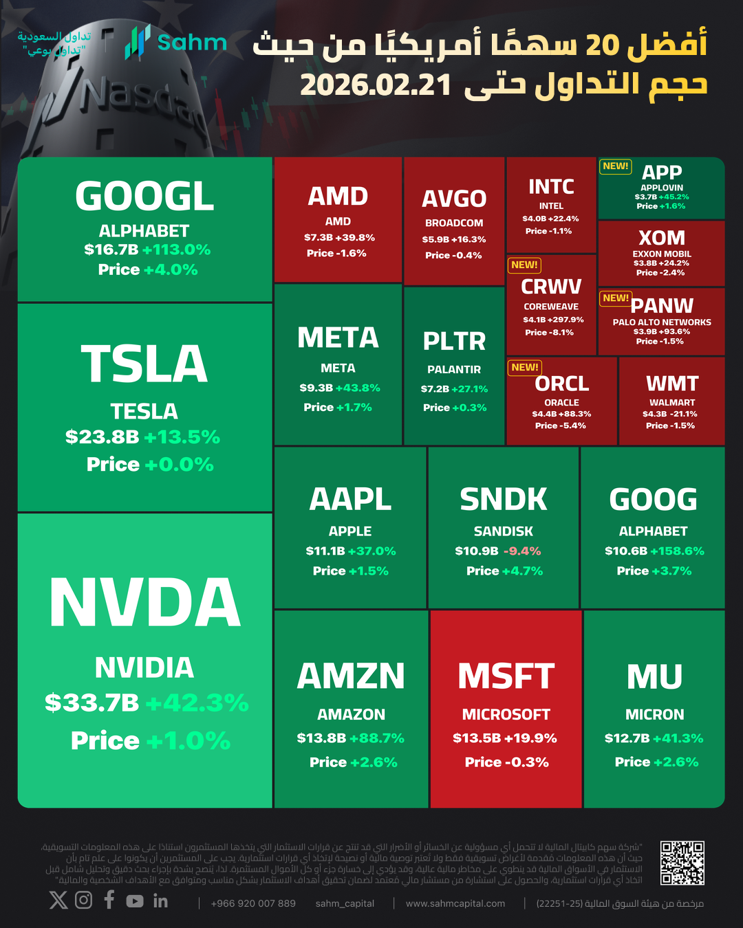 In One Chart | "Nvidia Nears $30B Investment in OpenAI" - What Happened to Top 20 US Stocks by Turnover on February 21st