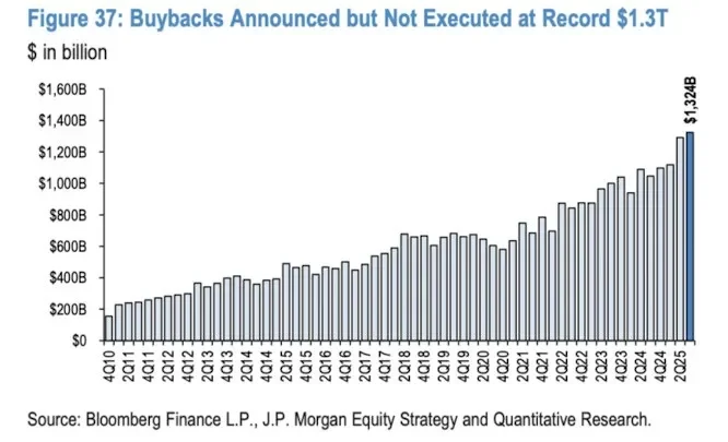 This year, tech and financial giants have unleashed a buyback frenzy, with U.S. publicly listed companies repurchasing shares at an unprecedented pace. The total buyback volume has surpassed $1 trillion at record speed, becoming a critical force behind the continuous highs of the S&P 500 and Nasdaq indices.