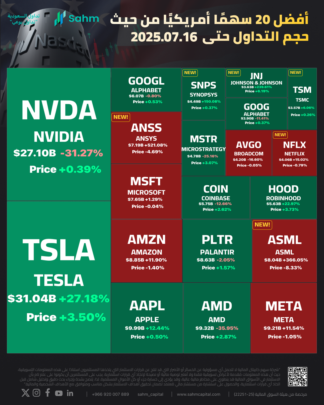 - 20th-ranked Johnson & Johnson(JNJ.US) rose 6.19%, with a trading volume of $35.94 billion. The company’s Q2 results exceeded Wall Street expectations and it raised its full - year guidance, showing confidence in the face of Trump’s tax and drug - pricing threats in the pharmaceutical industry. The company reported Q2 sales of $23.7 billion, above analysts’ average estimate of $22.8 billion. Q2 non - GAAP earnings per share were $2.77, $0.09 above expectations. J&J raised its full - year 2025 revenue forecast midpoint by $2 billion to $93.4 billion and its full - year adjusted EPS forecast midpoint to $10.80 - $10.90.