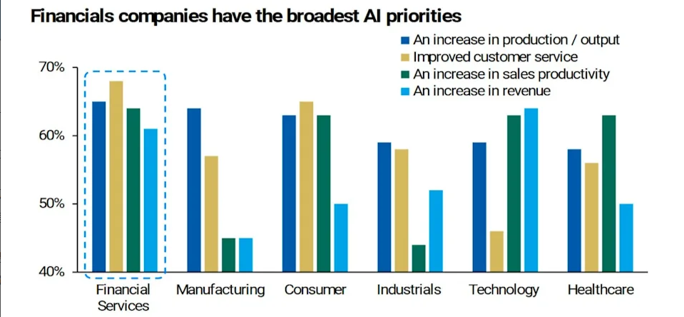 Morgan Stanley wrote in its July 2025 edition of the AI Adopter Survey: "In our specialized survey of 400 companies applying GenAI (Generative AI) to their products, financial companies show the most low-cost opportunities in both cost and revenue."