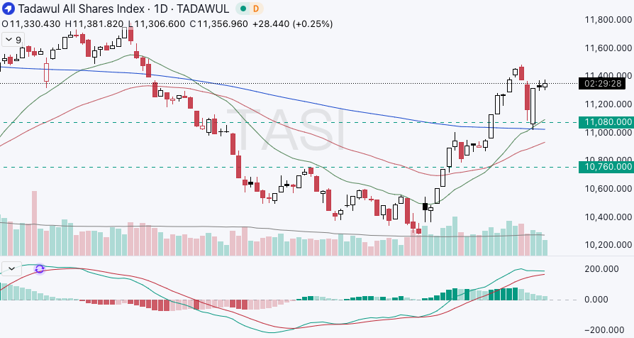 The Saudi benchmark stock index, Tadawul All Shares Index(TASI.SA), edged up 0.2% during Wednesday’s early trading session, supported by positive momentum in the materials, utilities, and consumer staples sectors.