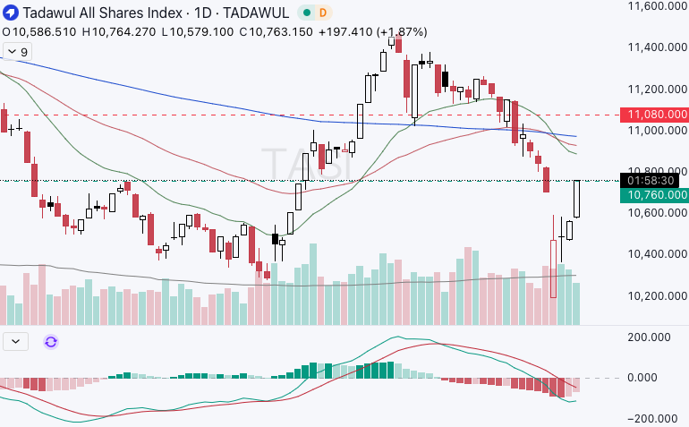 Saudi Arabia’s benchmark index Tadawul All Shares Index(TASI.SA) advanced nearly 2% during mid-market trading, extending the previous session's gains. The Saudi market continues to demonstrate resilience and follow a recovery trajectory, having already absorbed the initial shock of regional geopolitical developments earlier in the week.