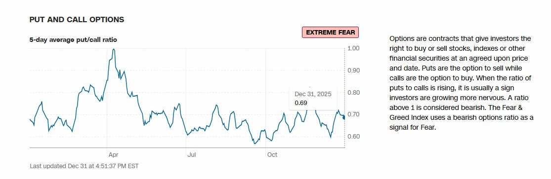 Options Market (Extreme Fear): This caution is clear in a few areas. The "Put/Call Options" reading screams "Extreme Fear." The put/call ratio is at 0.69, meaning investors are buying a lot of puts for protection. They're hedging, preparing for a potential drop.