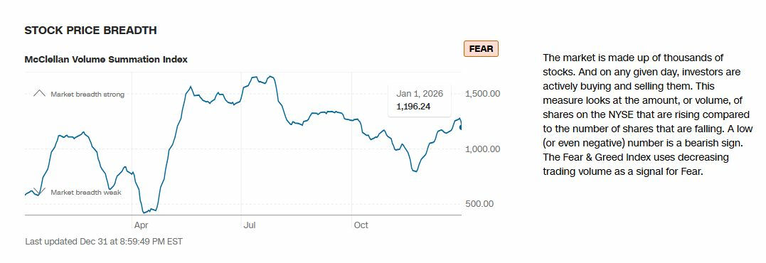 Stock Price Breadth (Fear): The "Stock Price Breadth" indicator also shows "Fear." The McClellan Volume Summation Index, while positive, is below a key level. This tells us the recent market moves might lack broad, strong volume support—it feels a bit fragile.