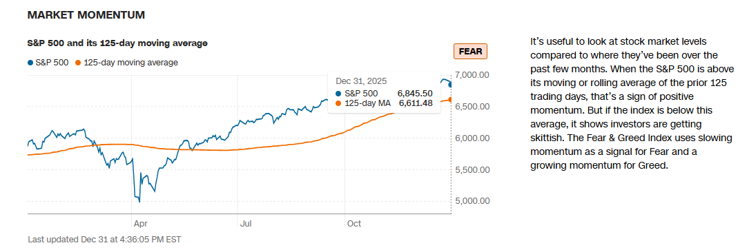 Market Momentum: The S&P 500 is above its 125-day average, which is technically a positive sign. But the index labels this "Fear." This might mean the rally is narrow.