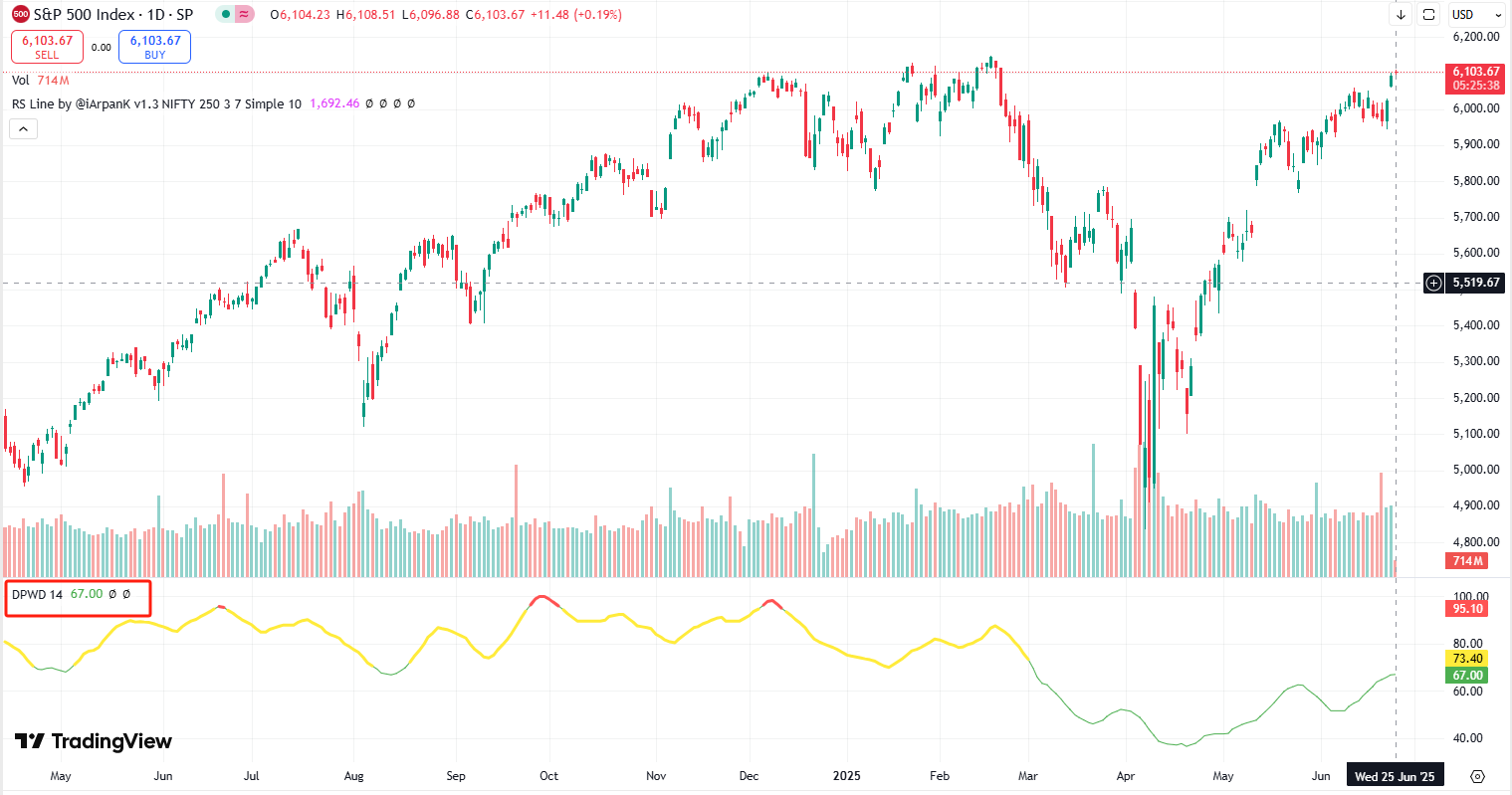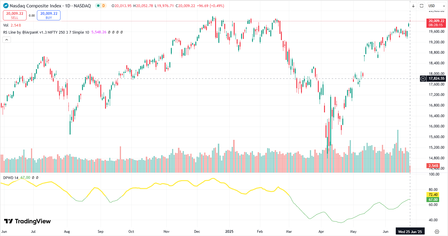 Our indicators show that on June 25, the technical indicator values for both the S&P 500 and Nasdaq reached 67, nearing the 70 threshold that signals a "long" signal.