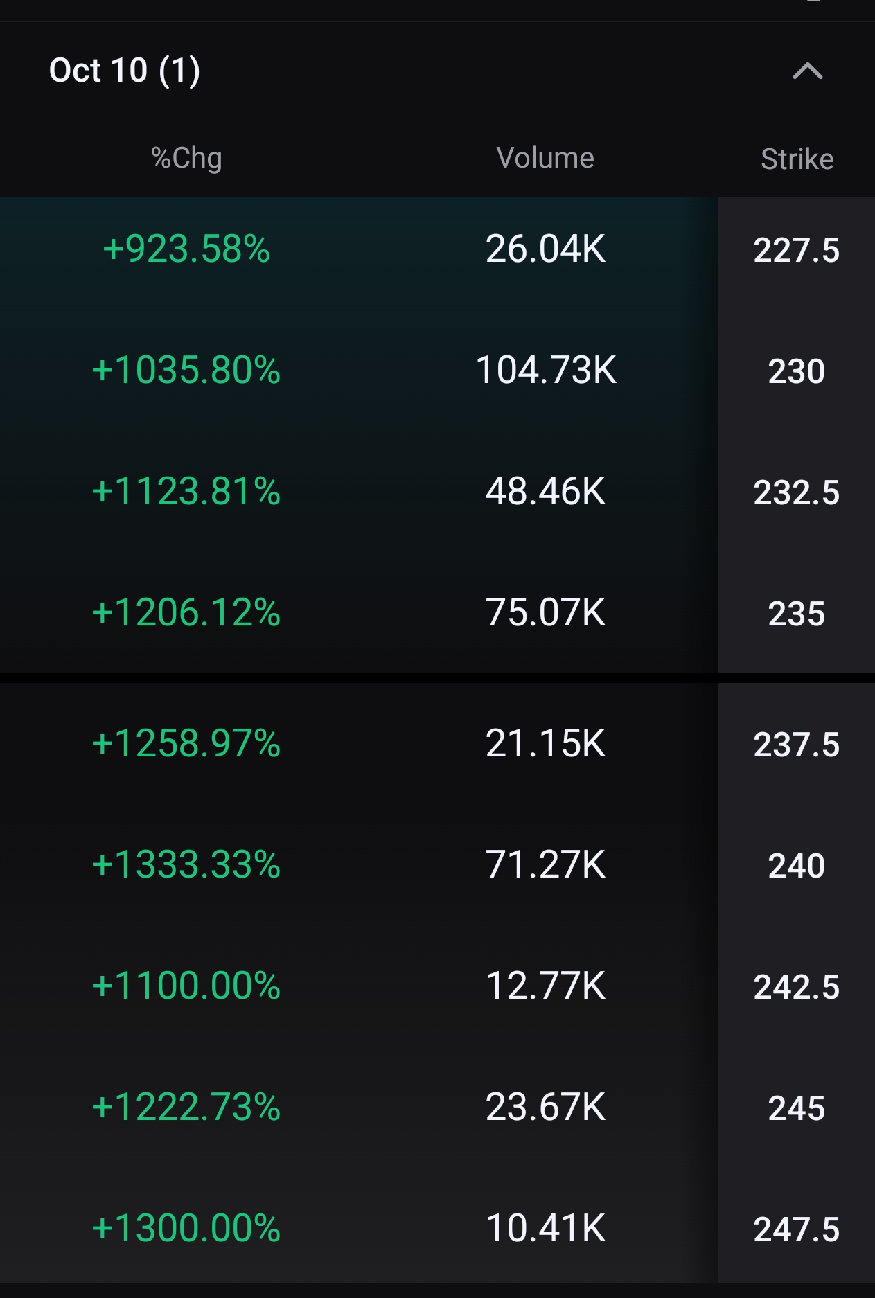 | Advanced Micro Devices, Inc.(AMD.US) | PUT | $222.5 | 10/10/25 | 39.92K | 266 | 150.06 |