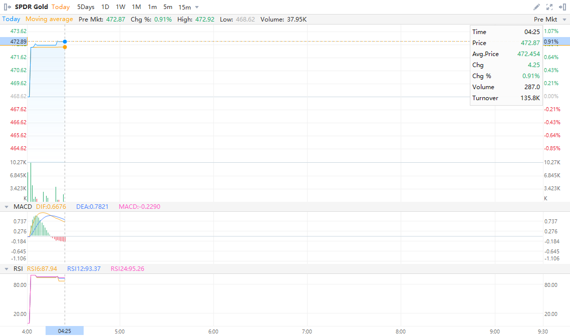 SPDR Gold GLD | 445.09 440.62 | +2.23% -1.00% Pre |