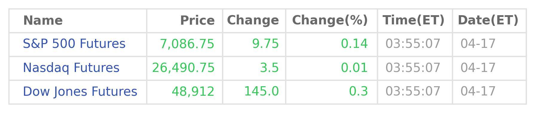 US stock futures were mixed early Friday as markets weighed President Trump's remarks that the Iran conflict 'should be ending pretty soon' alongside a new ceasefire agreement.