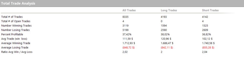 Looking at the average trade in Figure 9, we see a significant improvement: the average trade value rises to around $134, compared to $89 in the previous version. This is a very encouraging figure, as it indicates that using the ADX as a filter helps avoid many false signals and allows the system to focus on conditions more favorable for breakouts.