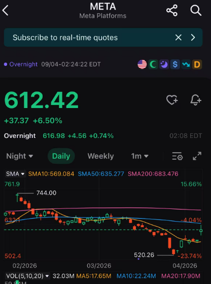 Meta Platforms META | 629.86 624.00 | +0.23% -0.93% Pre |