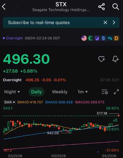 Seagate Technology Holdings PLC STX | 503.13 497.50 | +0.47% -1.12% Pre |
