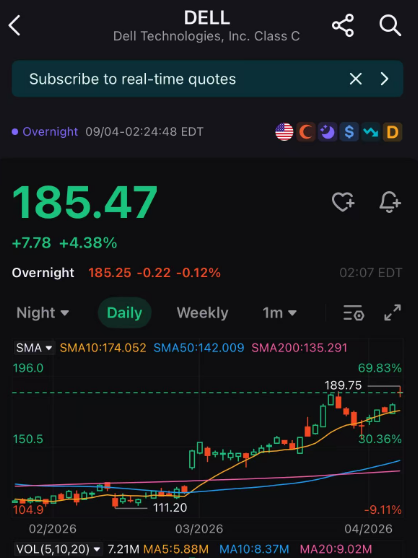 Core Logic & Catalyst: The stock continues to break new highs (+4%). Bank of America raised its price target after a meeting with CEO Michael Dell. As a leading AI server supplier, Dell is a direct and clear beneficiary of surging enterprise AI infrastructure spending.
