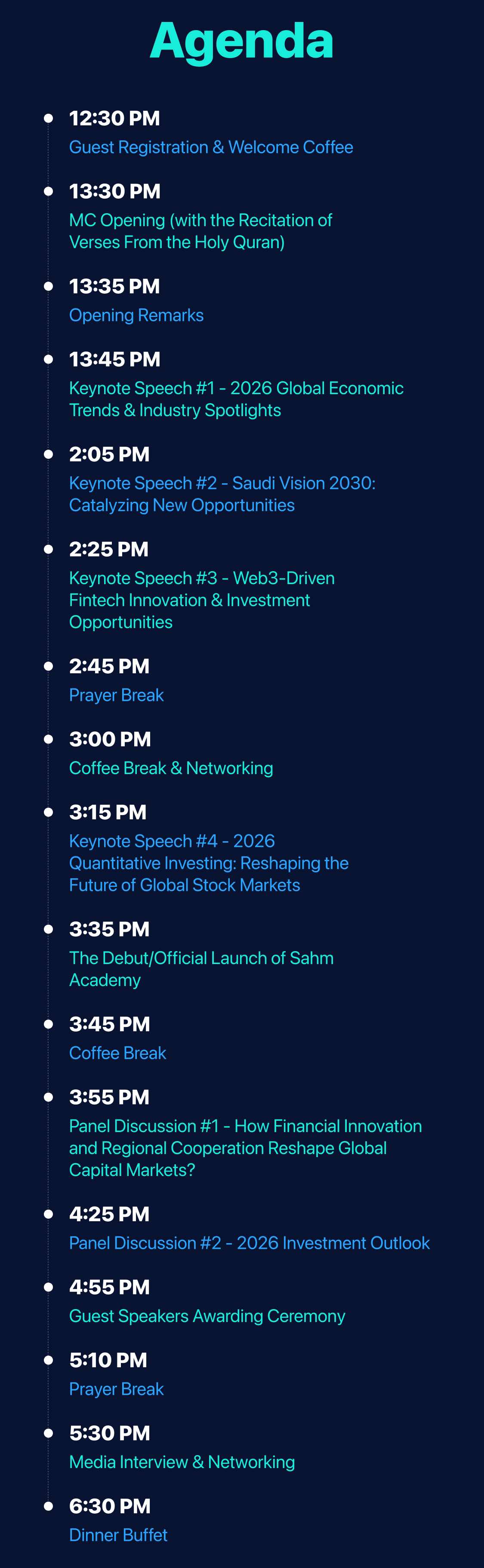 "Our commitment is to accompany our users on their journey to financial success by helping them grow their wealth and expand their opportunities," said Mohammed Asiri, CFO of Sahm Capital." By bringing global experts together in Riyadh, we’re creating a space where investors can access valuable insights for 2026 and engage directly with the perspectives shaping next year’s market environment."