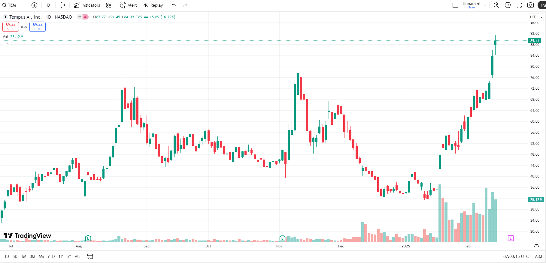 Tempus AI previously announced preliminary Q4 and full-year financial results, showcasing strong growth in its core business areas. The report indicated full-year revenue of approximately $693 million, a 30% increase year-over-year, and Q4 revenue of around $200 million, up 35% year-over-year. Additionally, the company's adjusted EBITDA (a non-GAAP financial measure) showed continuous improvement for both the full year and Q4 of 2024.
