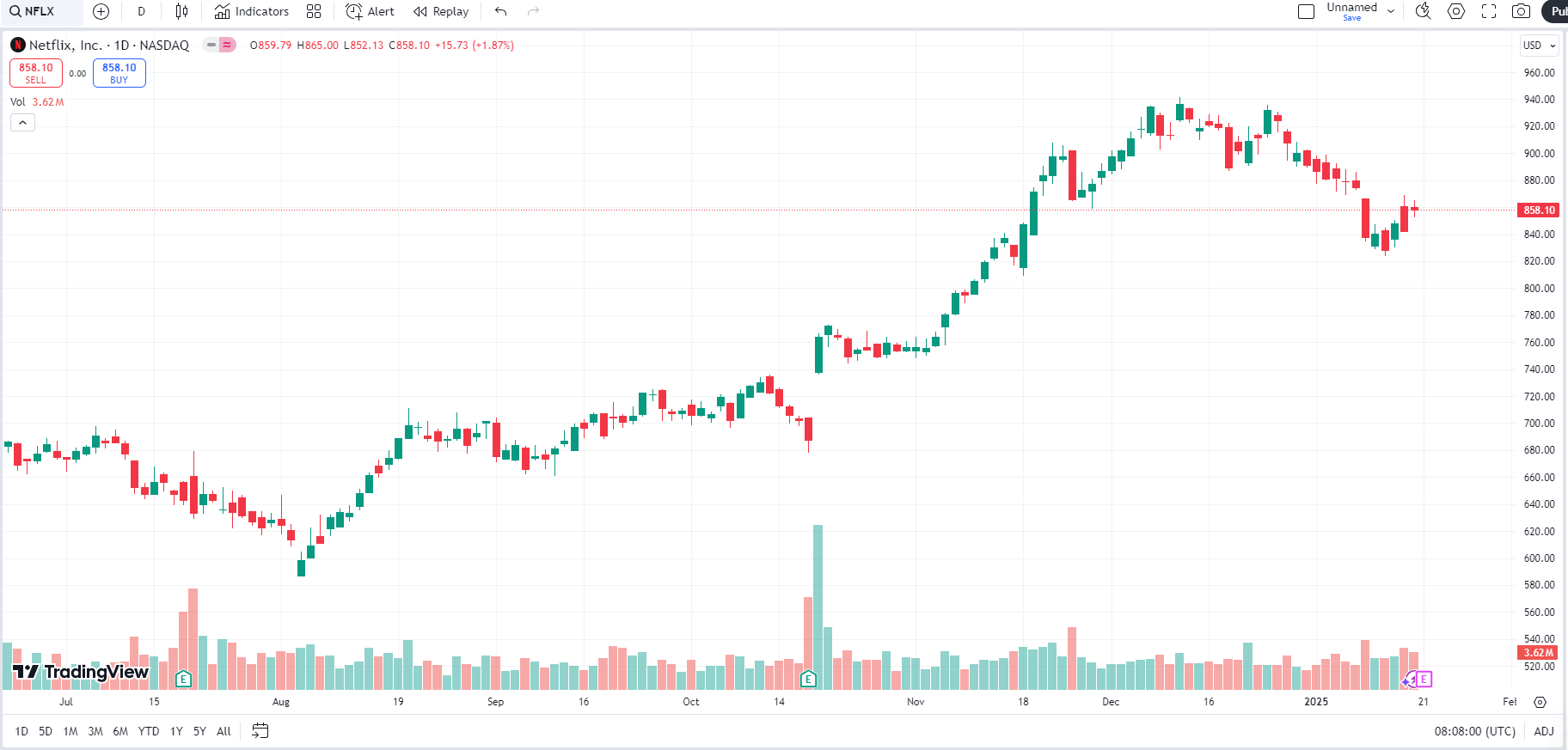 Over the past month, Netflix's stock has seen a nearly 5% decline, primarily driven by broader market sell-off pressures amidst macroeconomic uncertainties. Nevertheless, Netflix's stock has demonstrated a strong performance throughout 2024, maintaining an upward trajectory and appreciating by 83.07% in 2024. The stock reached a historic high of $941.75 on December 11, 2024.