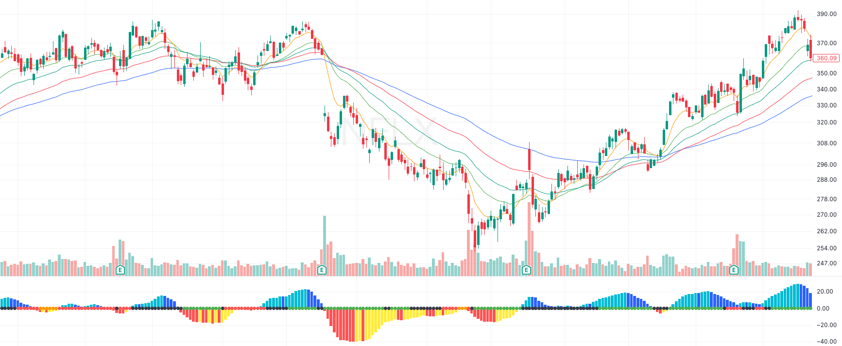 - The Setup: Netflix was in a steep downtrend, approaching a key support level. Carter saw institutional buying volume pick up and a Squeeze forming on the 4-hour chart, signaling a potential reversal.