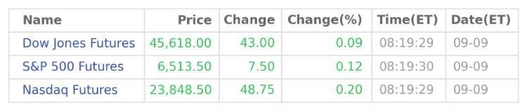 As of 03:19 PM Riyadh Time, compare to the prices at 17:00:00 on the previous trading day, including any holiday-shortened sessions, the blue-chip Dow Jones Futures increase slightly by 43.0 points or 0.09% to 45,618, the broad-based S&P 500 Futures tick higher by 7.5 points or 0.12% to 6,514, the tech-heavy Nasdaq Futures edge up by 48.75 points or 0.2% to 23,848. (Data source: Wind Quant)