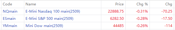 As of 03:10 PM Riyadh Time, futures for the Dow Jones Industrial Average fell 114 points, or 0.26%. S&P 500 futures and Nasdaq 100 futures also dropped 0.3% each.