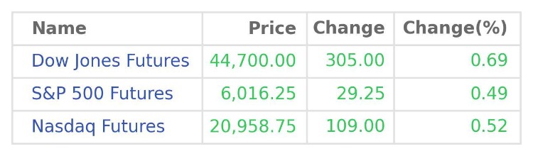 As of 08:39 AM, EST (or 04:39 PM in Riyadh ), the blue-chip Dow Jones Futures are heading up 305 points or 0.69% to 44,700, the broad-based S&P 500 Futures augmented by 29 points or 0.49% to 6,016, the tech-heavy Nasdaq Futures appreciate by 109 points or 0.52% to 20,959. (Data source: Wind Quant)