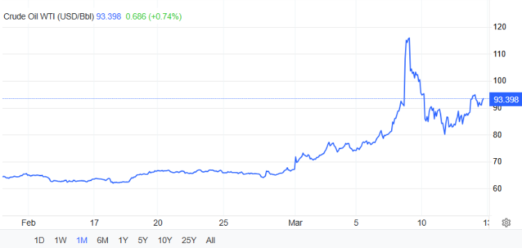 West Texas Intermediate crude jumped 8.45% to $94.62 despite International Energy Agency releasing 400 million barrels of emergency reserves, after reports Iran targeted three more vessels in the Strait of Hormuz, stoking inflation concerns and pressuring risk assets. Read in detail>>
