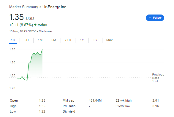 Ur-Energy Inc. URG | 1.56 | +1.96% |