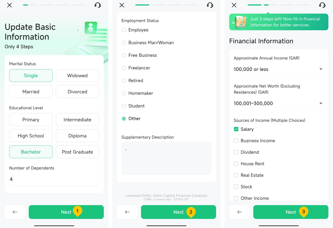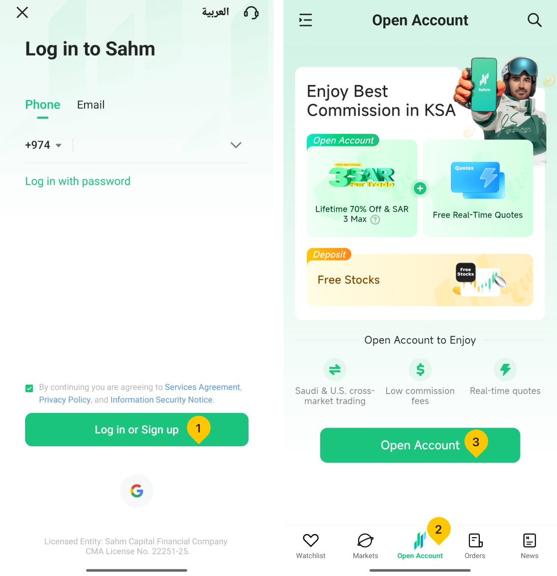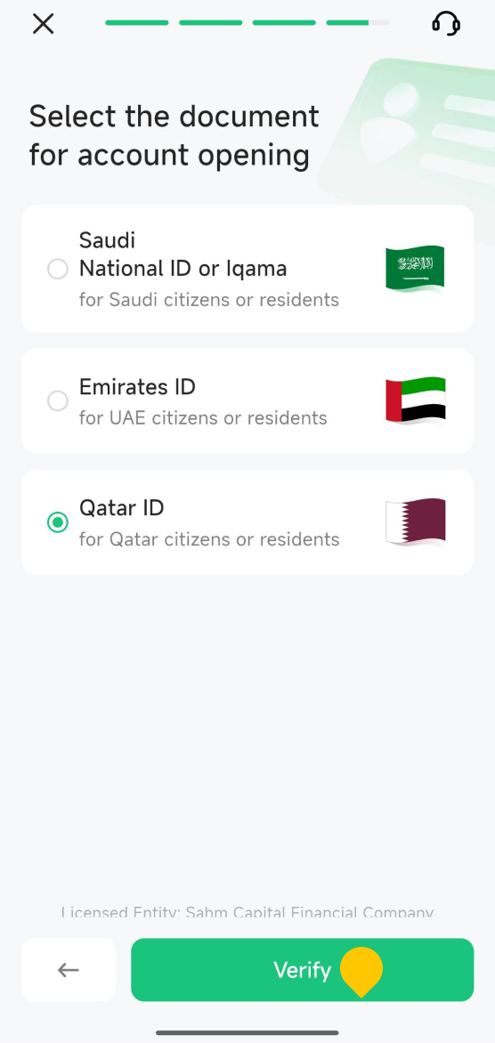 Currently, Sahm supports account opening for citizens and residents of Saudi Arabia, the Emirates (UAE), and Qatar. Please follow these steps: