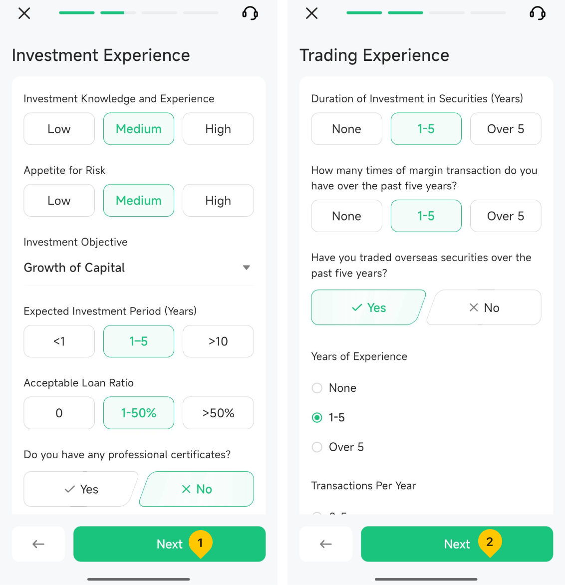 4. Answer questions about your investment and trading experience. This helps to provide more personalized investment services to meet your needs and goals.