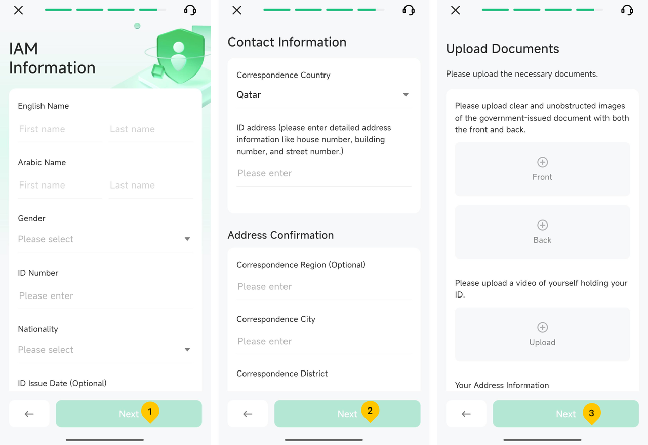 6. Fill in IAM Information and Contact Information, Upload Documents as required and then tap "Next".