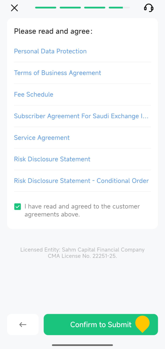 8. Carefully read the agreement terms and then tap "Confirm to Submit" to proceed.