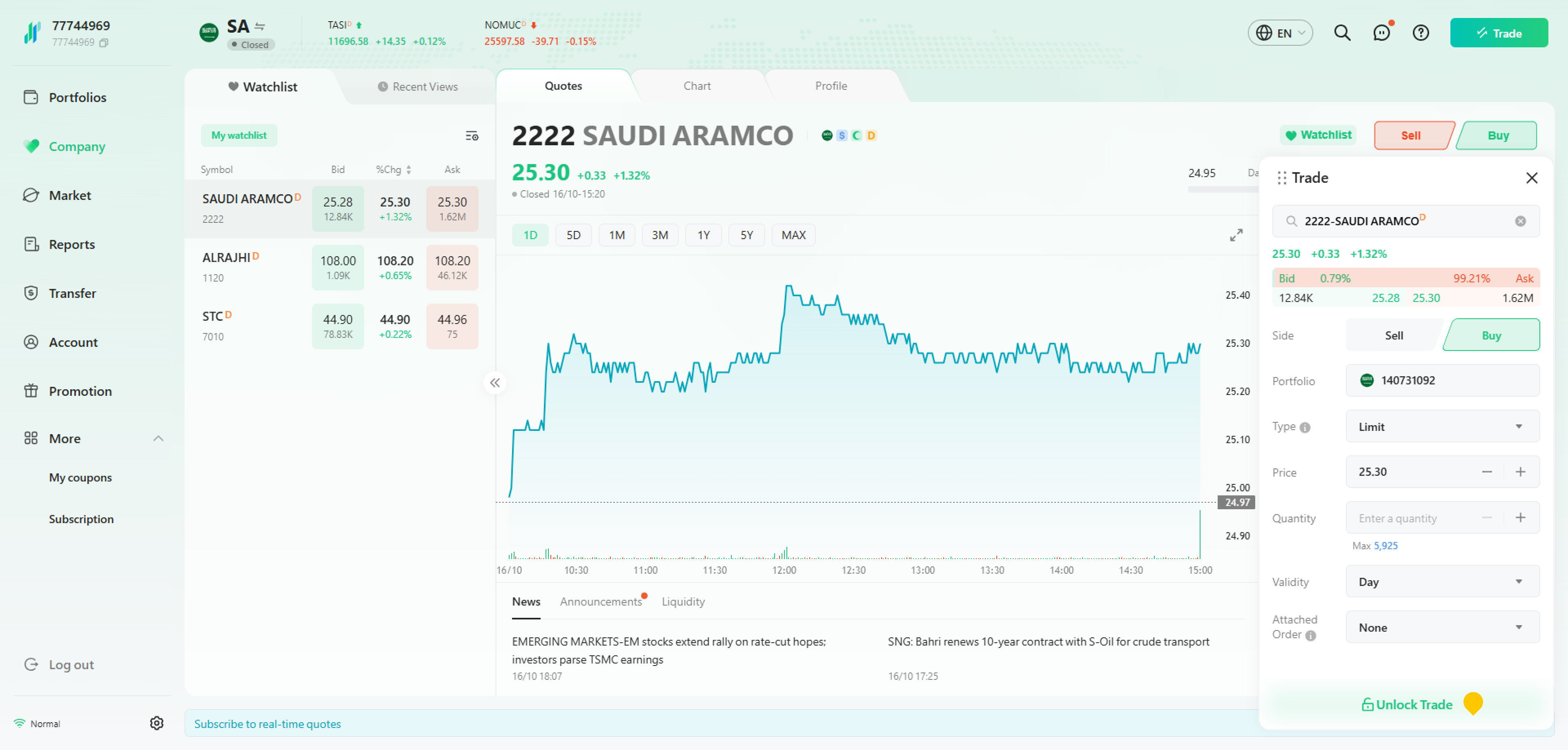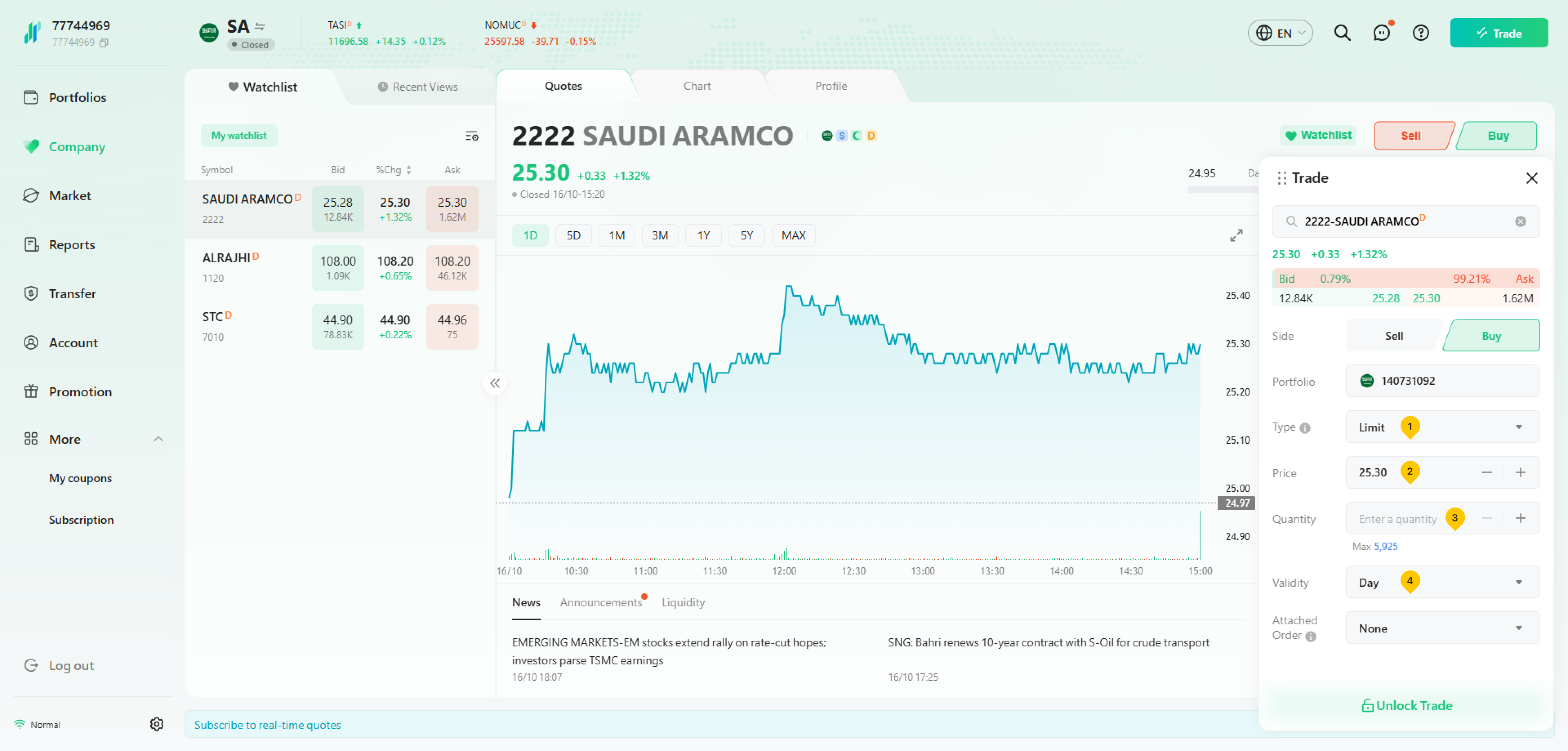 - Click on "Unlock Trade", then enter your trading password to complete the order.