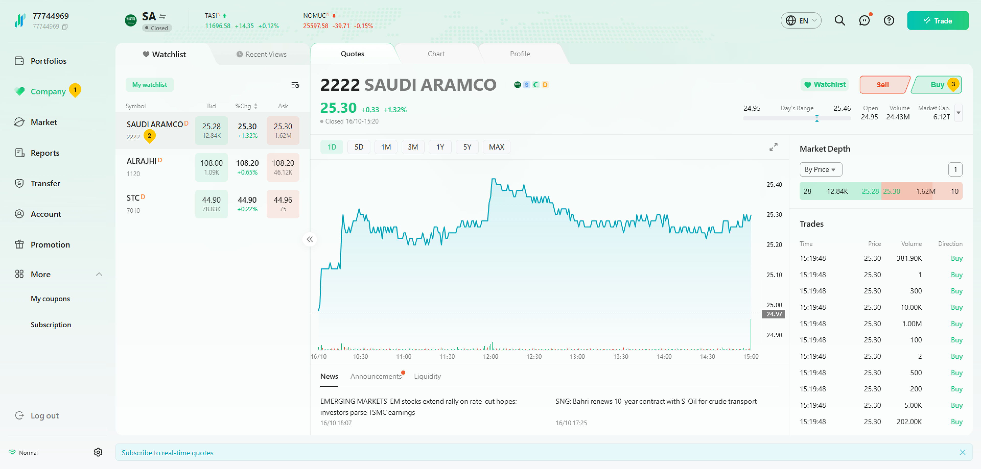- Click "Company" on the left side of the page, and select the company that you want to trade, then click "Buy".